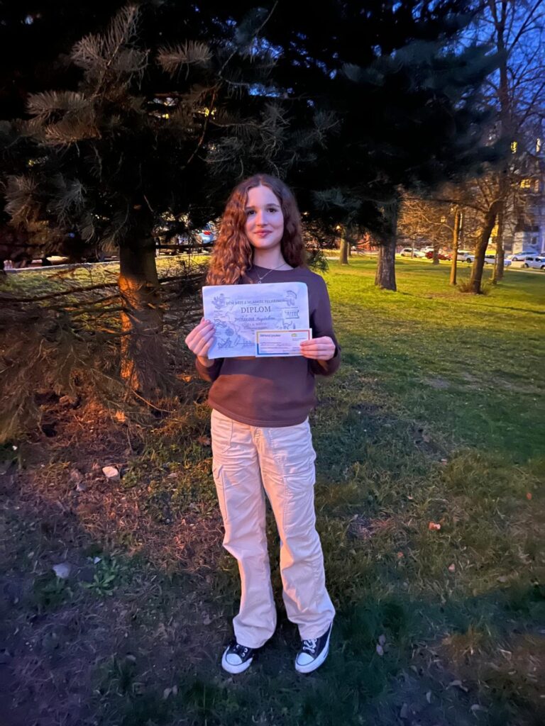 Magda Dvořáková se umístila na nádherném 2. místě z 21 účastníků, Jana Dvořáková byla úspěšnou řešitelkou této soutěže. Ve II. kategorii – střední školy úspěšně řešil náročné úkoly Jan Vacek ze třídy 1D4.