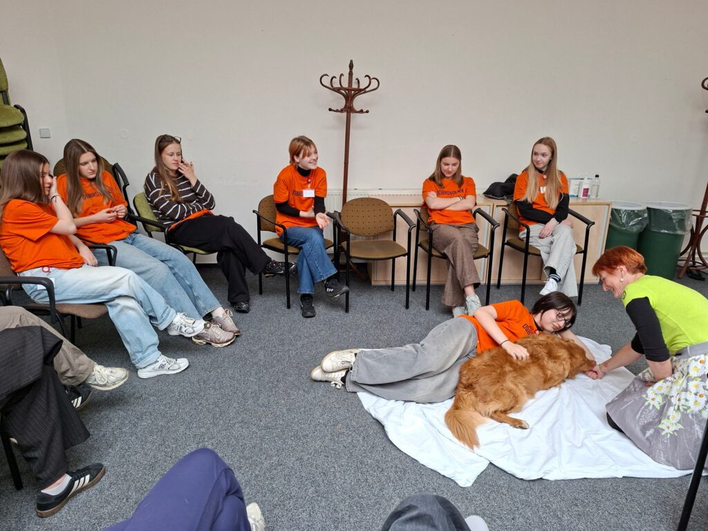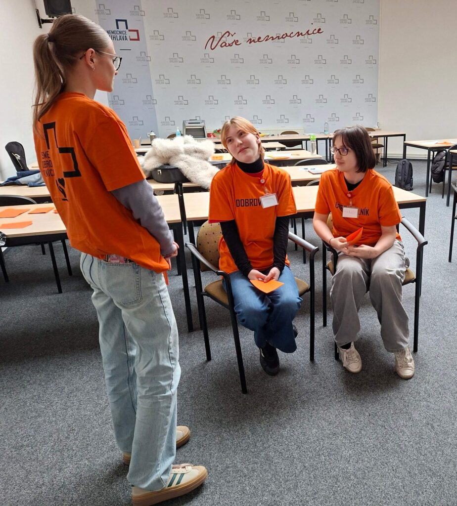 Vedoucí Centra podpůrné a sociální péče Žofie Vojáčková nás nejprve seznámila s prací dobrovolníků ve zdravotnickém prostředí, abychom získaly základní představu o tom, co tato činnost obnáší. Formou hraných scének si děvčata následně vyzkoušela, jak správně komunikovat s pacienty.