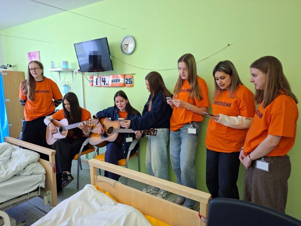 Dobrovolnice měly též příležitost zažít i přímou práci s pacienty. Jedna skupina dobrovolnic navštívila geriatrické oddělení, kde za doprovodu dvou kytar zazpívaly pacientům na pokojích. Setkání se setkalo s velkým nadšením a někteří pacienti se také aktivně zapojili. Druhá skupina pracovala s pacienty v Klubu, kde se zaměřila na trénink paměti.